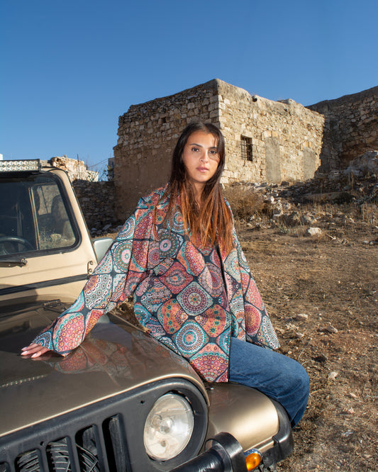 The Qashabeyyeh Sadu jacket blends traditional Bedouin craftsmanship with a modern, wearable...