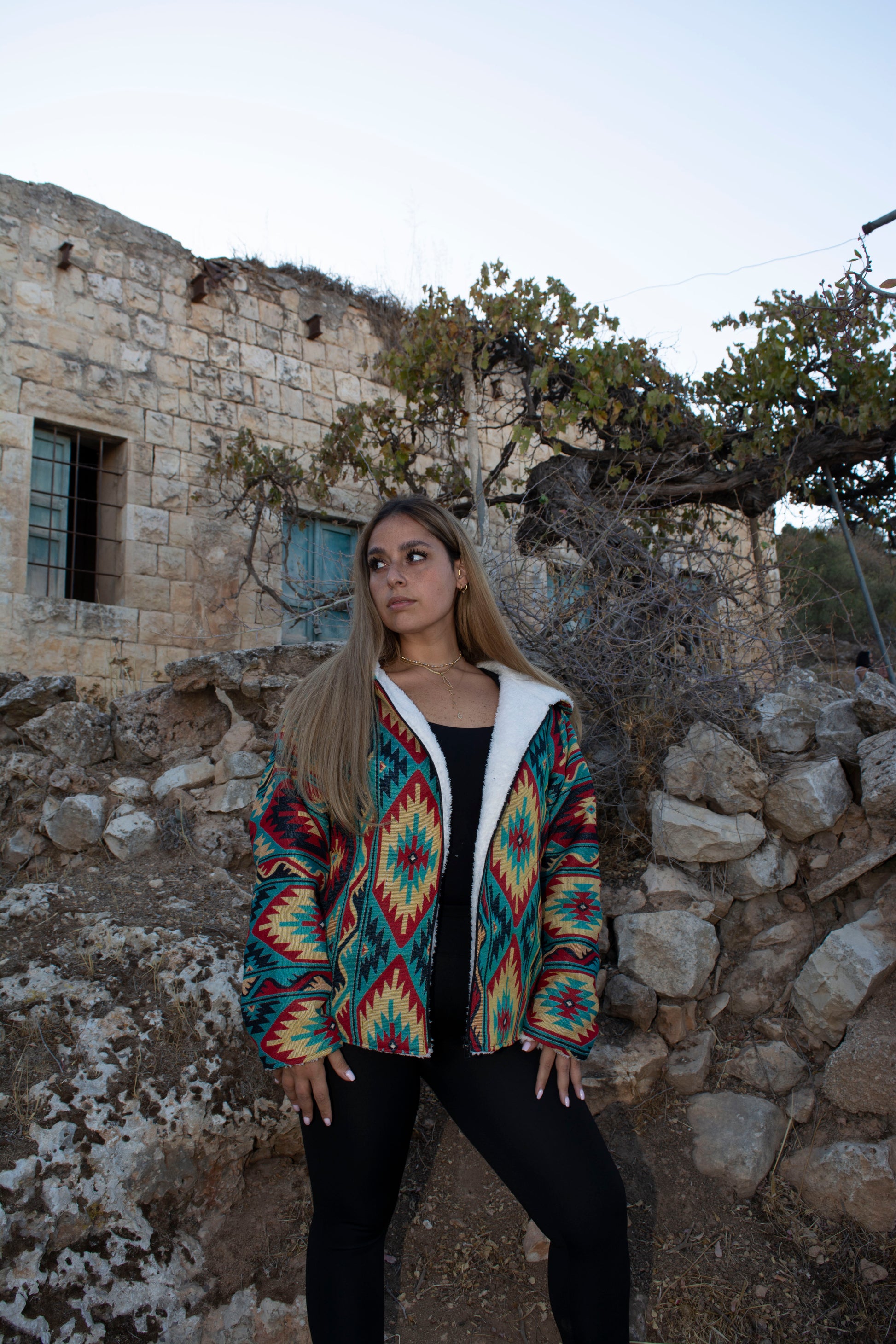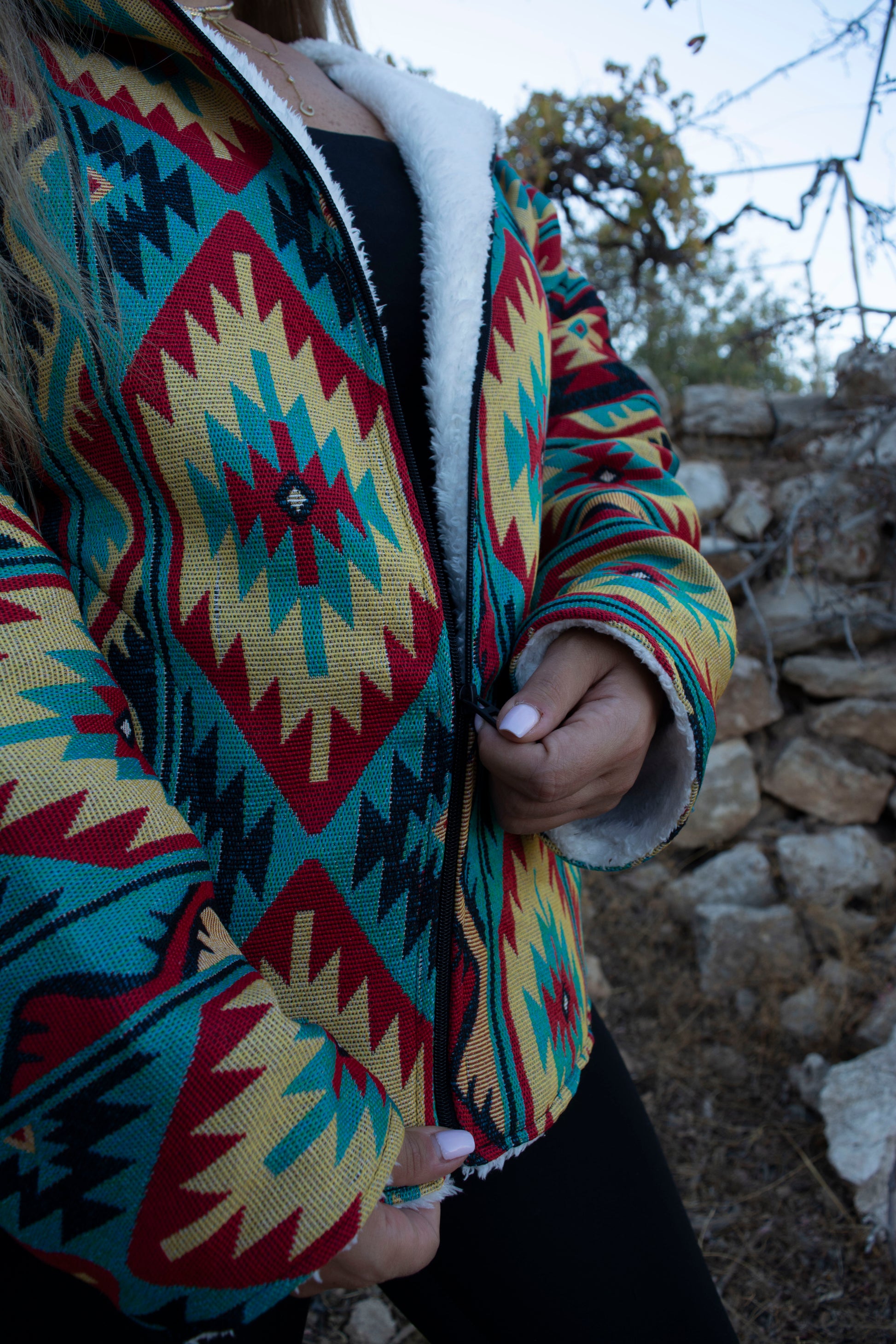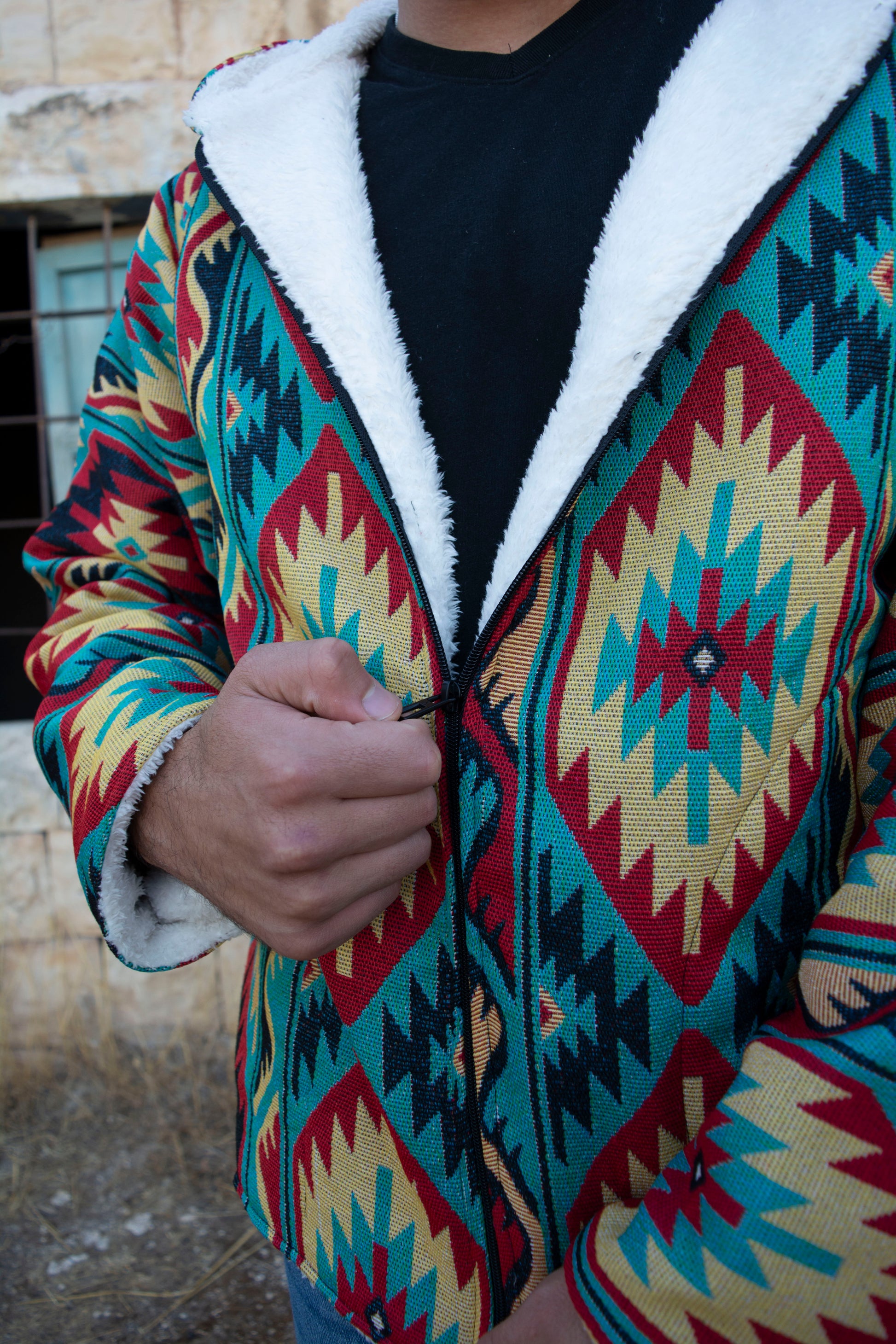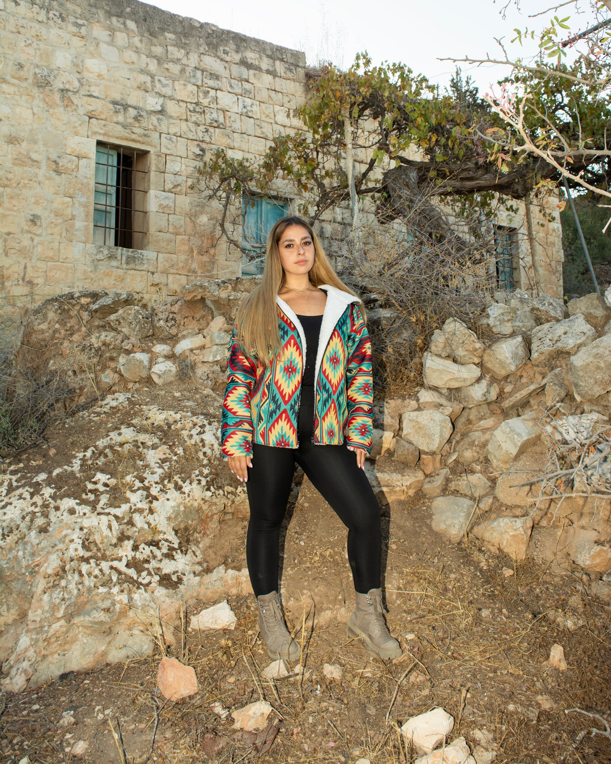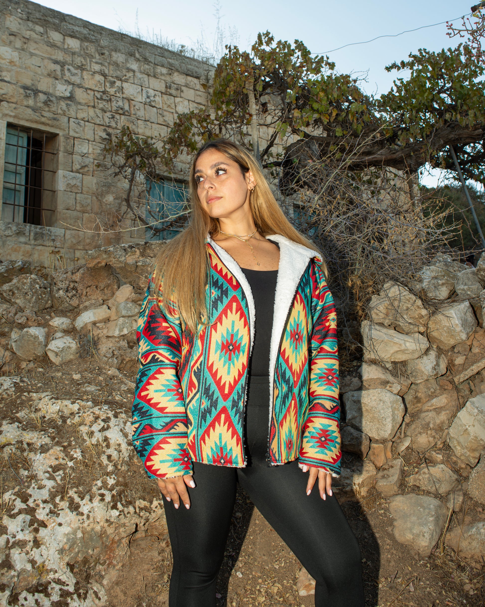 The Bahja Fuzzy Lined Jacket radiates delight with its cheerful, bright tones. Its soft, fuzzy lining, hood, zipper front, and slit cut design make it warm, comfortable, and stylish. Unisex and available in all sizes, Bahja brings joy and coziness wherever you go.