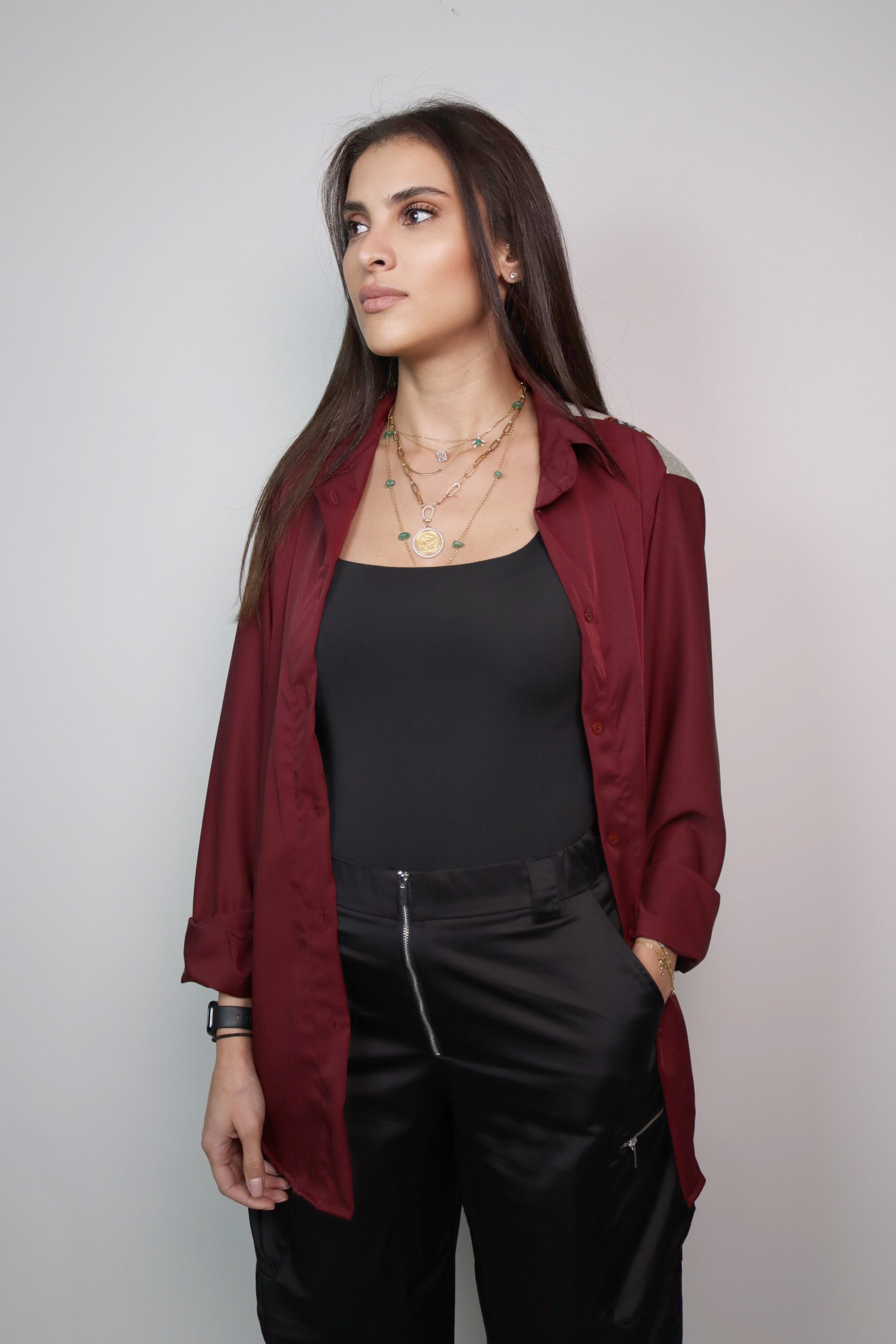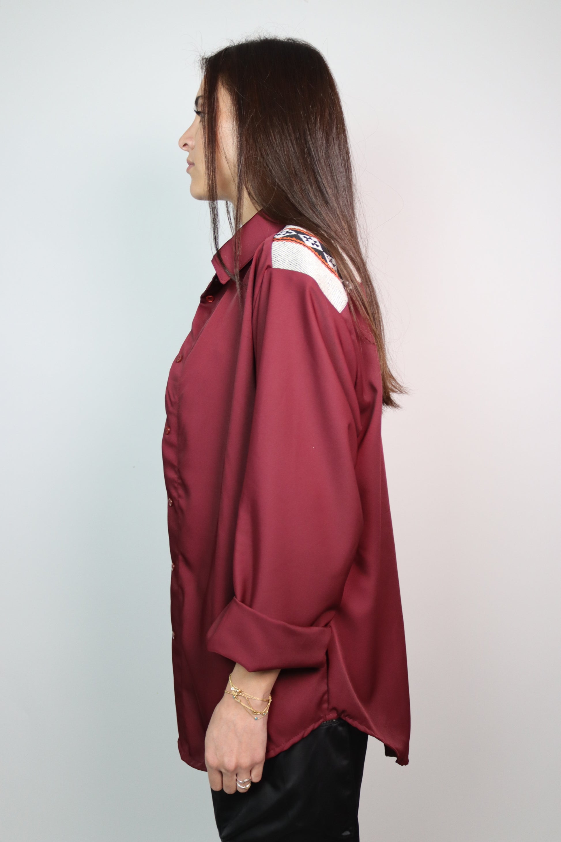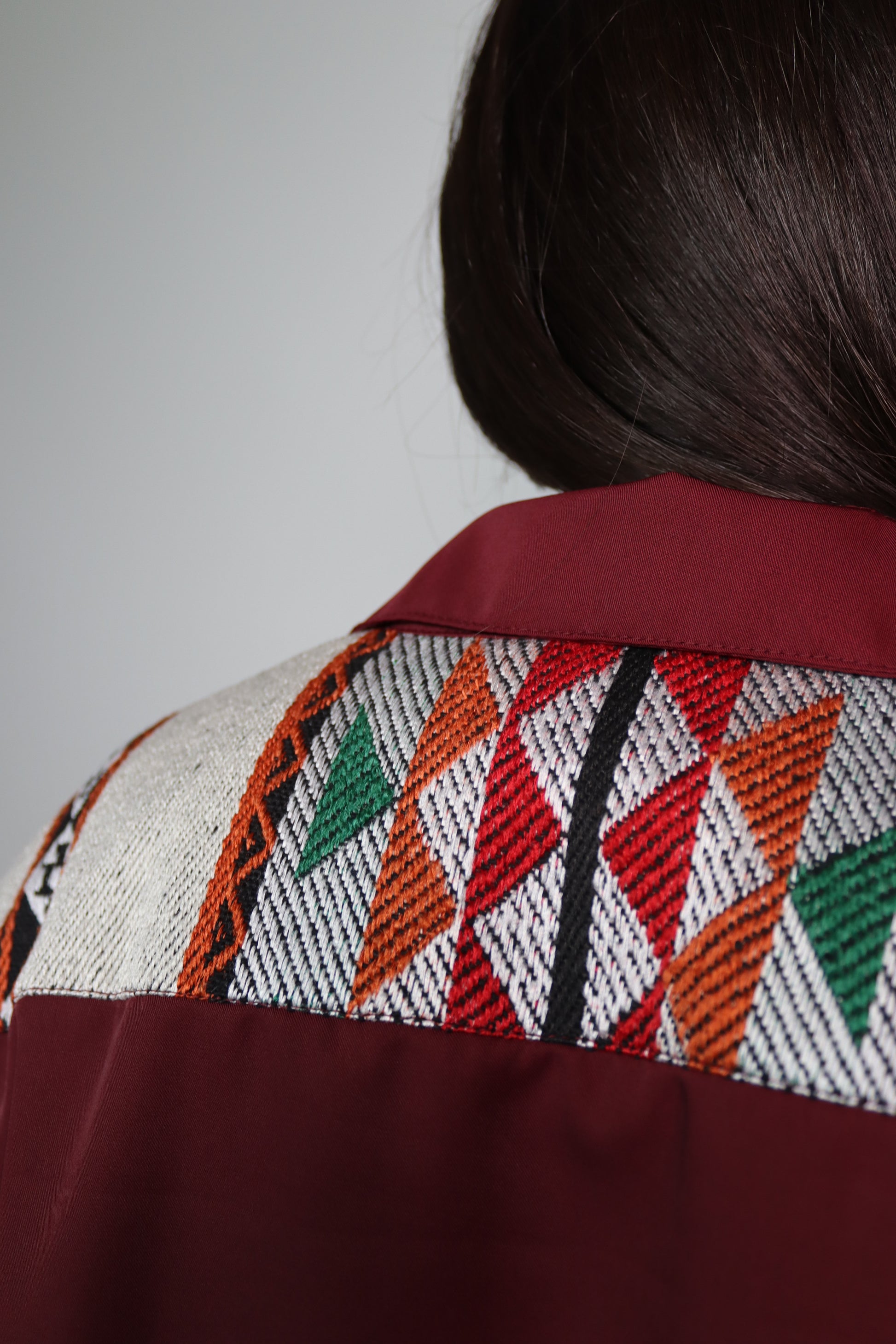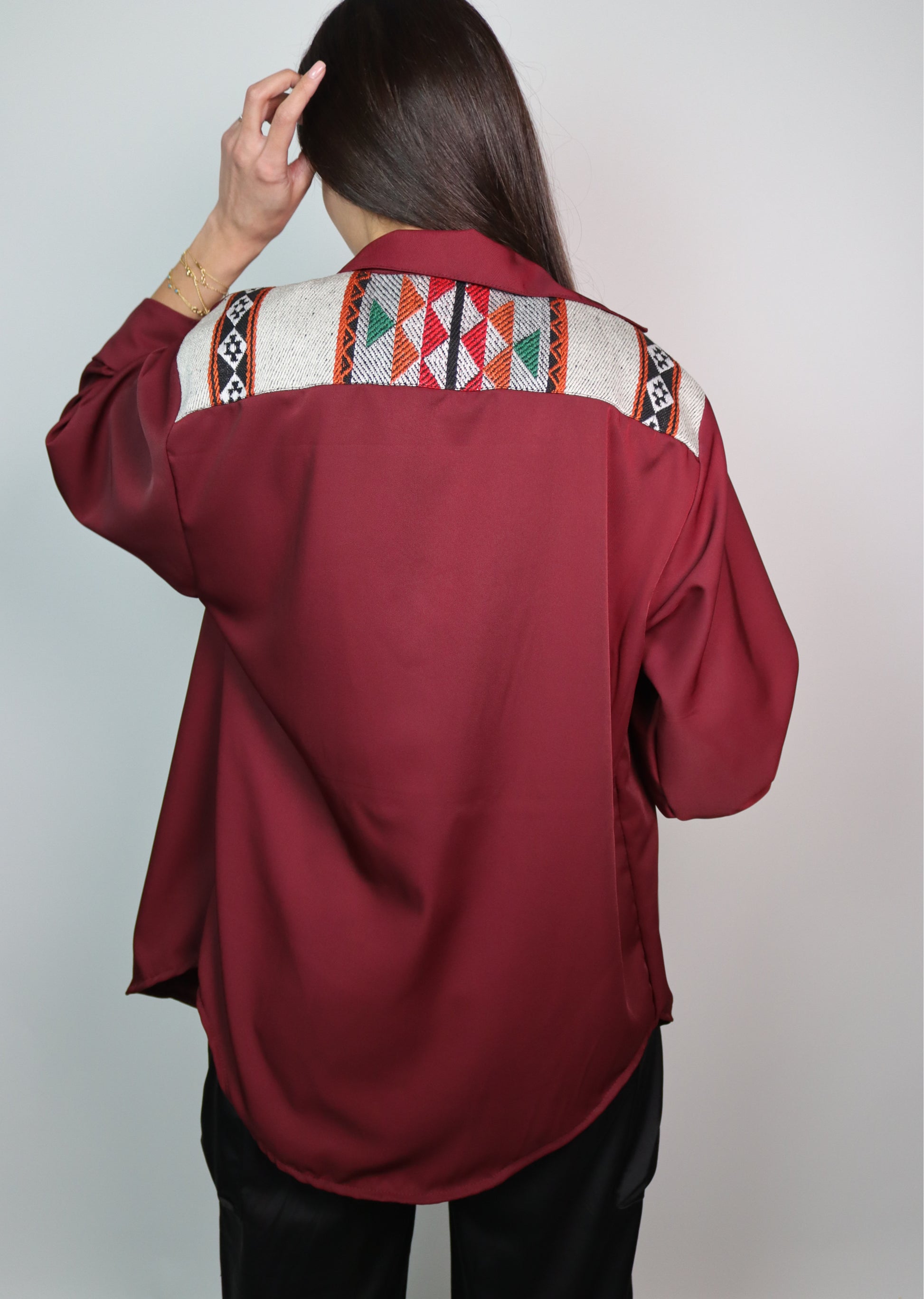Introducing the Qashabeyyeh Bassem on Maroon Shirt : A Handmade shirt for All Sizes with Worldwide Shipping.