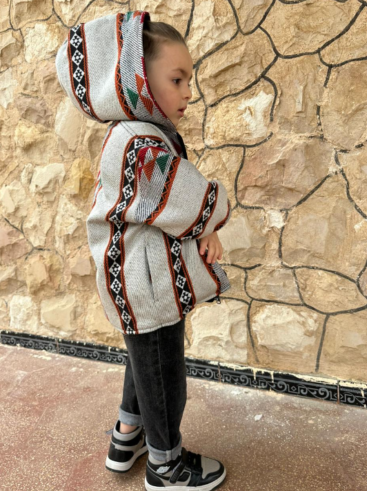 Discover the epitome of style and craftsmanship with the Qashabeyyeh Bassem Yousef's Kids Full Zipper Jacket. Handmade with meticulous attention to detail, this jacket represents the perfect blend of tradition and modernity.