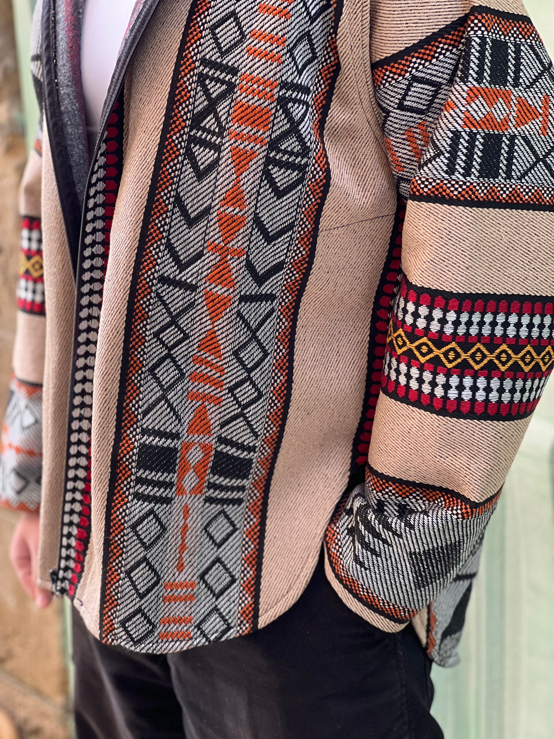 Introducing the Qashabeyyeh Bondoq full zipper jacket: Unisex Sophistication with a Contemporary Split Cut.