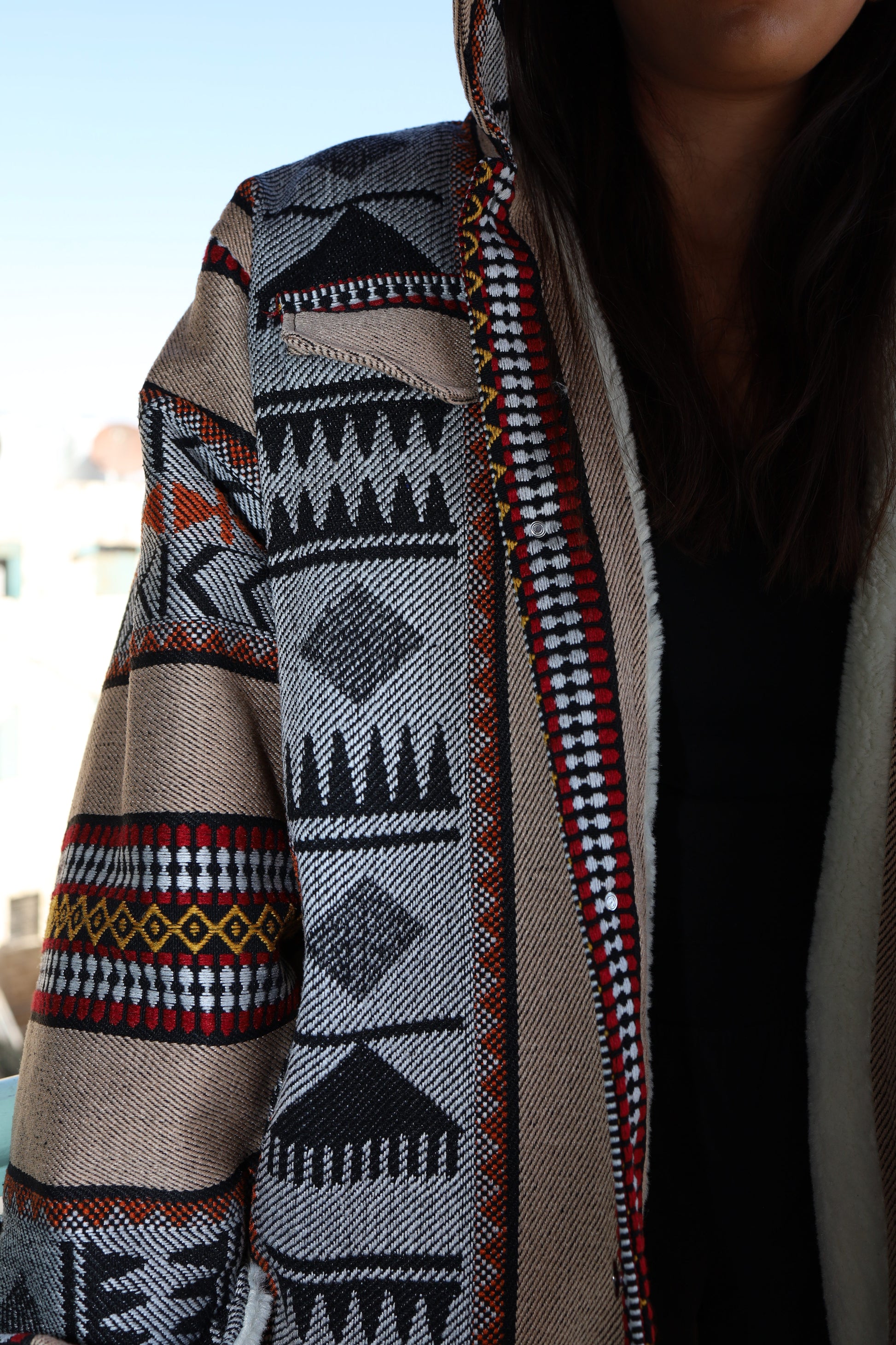 Elevate your wardrobe with the Qashabeyyeh Bondoq Fuzzy Lined Jacket. Order yours today and discover the blend of sophistication and comfort that defines our collection. Make a statement with your style and embrace the art of customizable fashion.