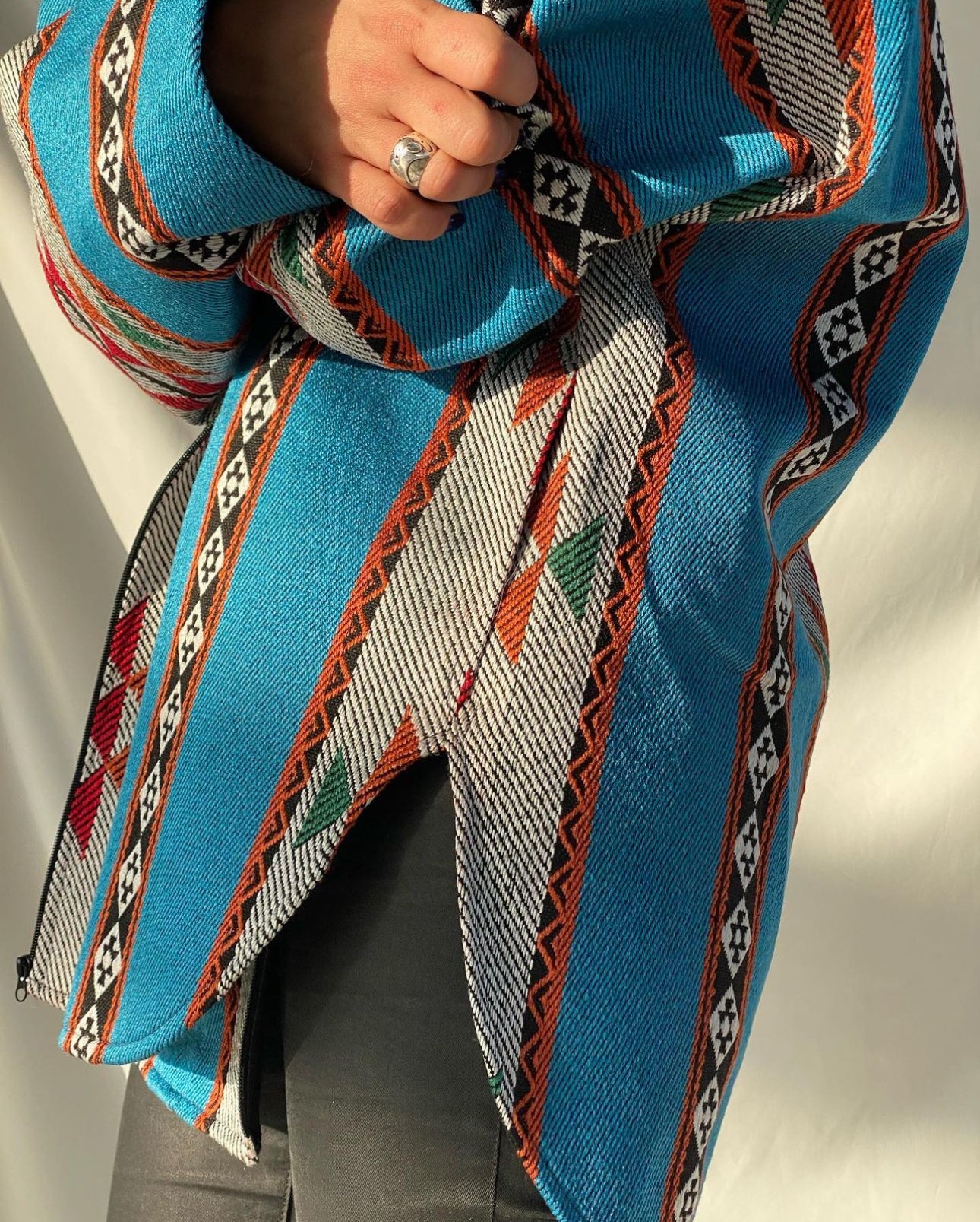 Introducing the Qashabeyyeh Sama Full Zipper Jacket: Unisex Sophistication in a Blue Split Cut Design.