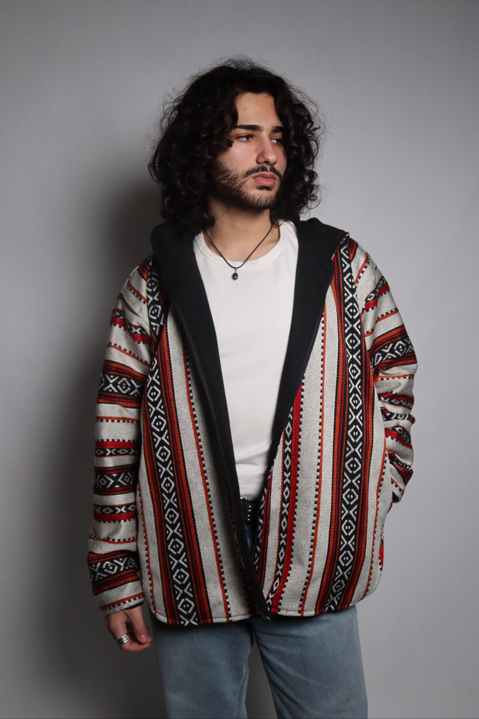 Crafted with utmost care and attention to detail, the jacket features a unique split cut that adds an edgy touch to its overall appeal. Each piece is meticulously handmade, ensuring superior craftsmanship and a one-of-a-kind aesthetic.