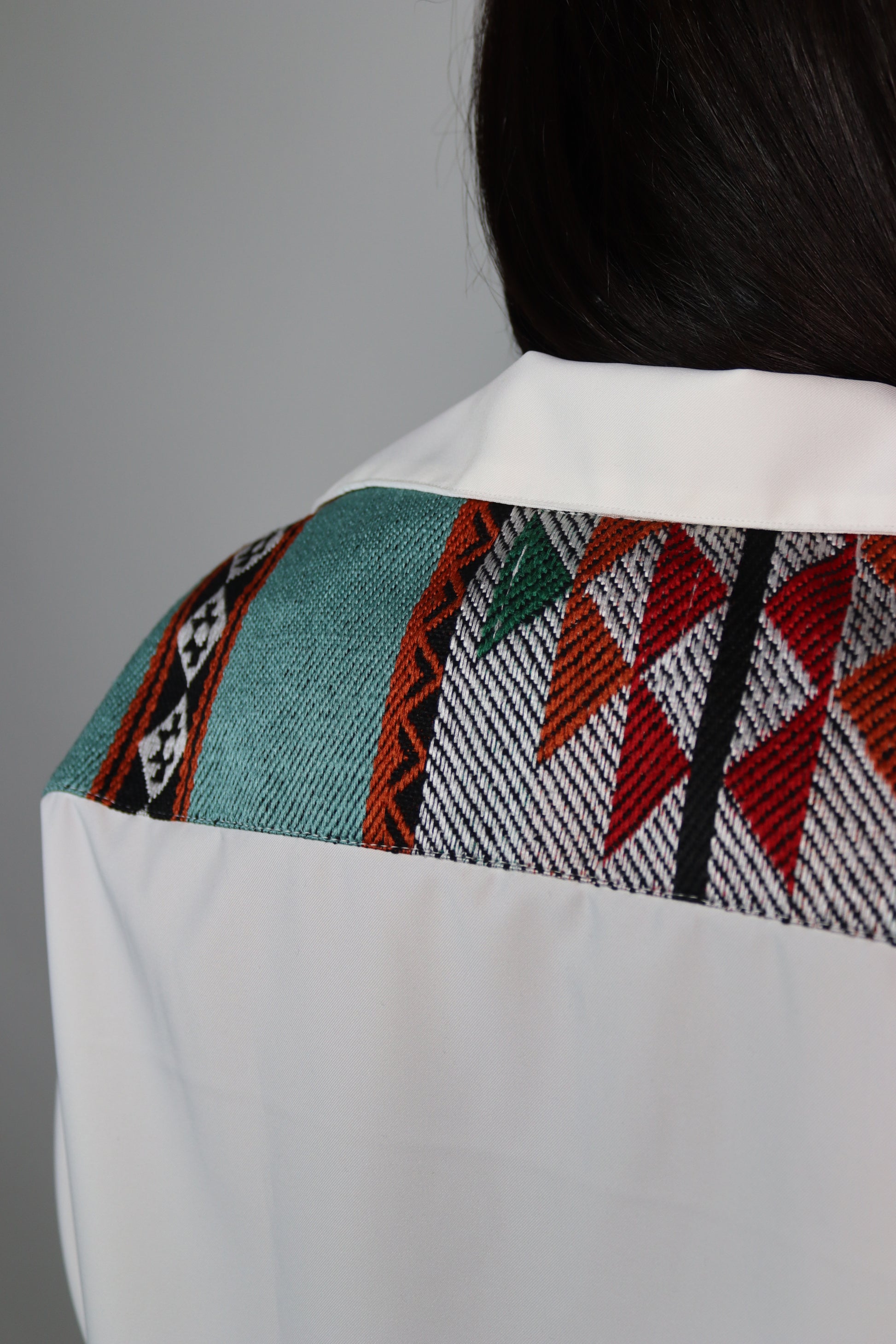Introducing the Qashabeyyeh Fairouz on White Shirt : A Handmade shirt for All Sizes with Worldwide Shipping.