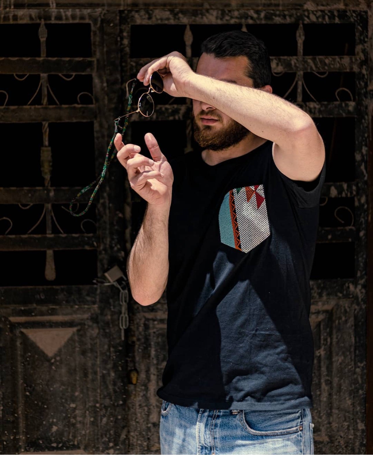 The Fayrouz Pocket on Black Unisex T-Shirt by Qashabeyyeh is a stylish and versatile tee that combines comfort and style. Handmade with meticulous attention to detail, this shirt showcases exceptional craftsmanship.
