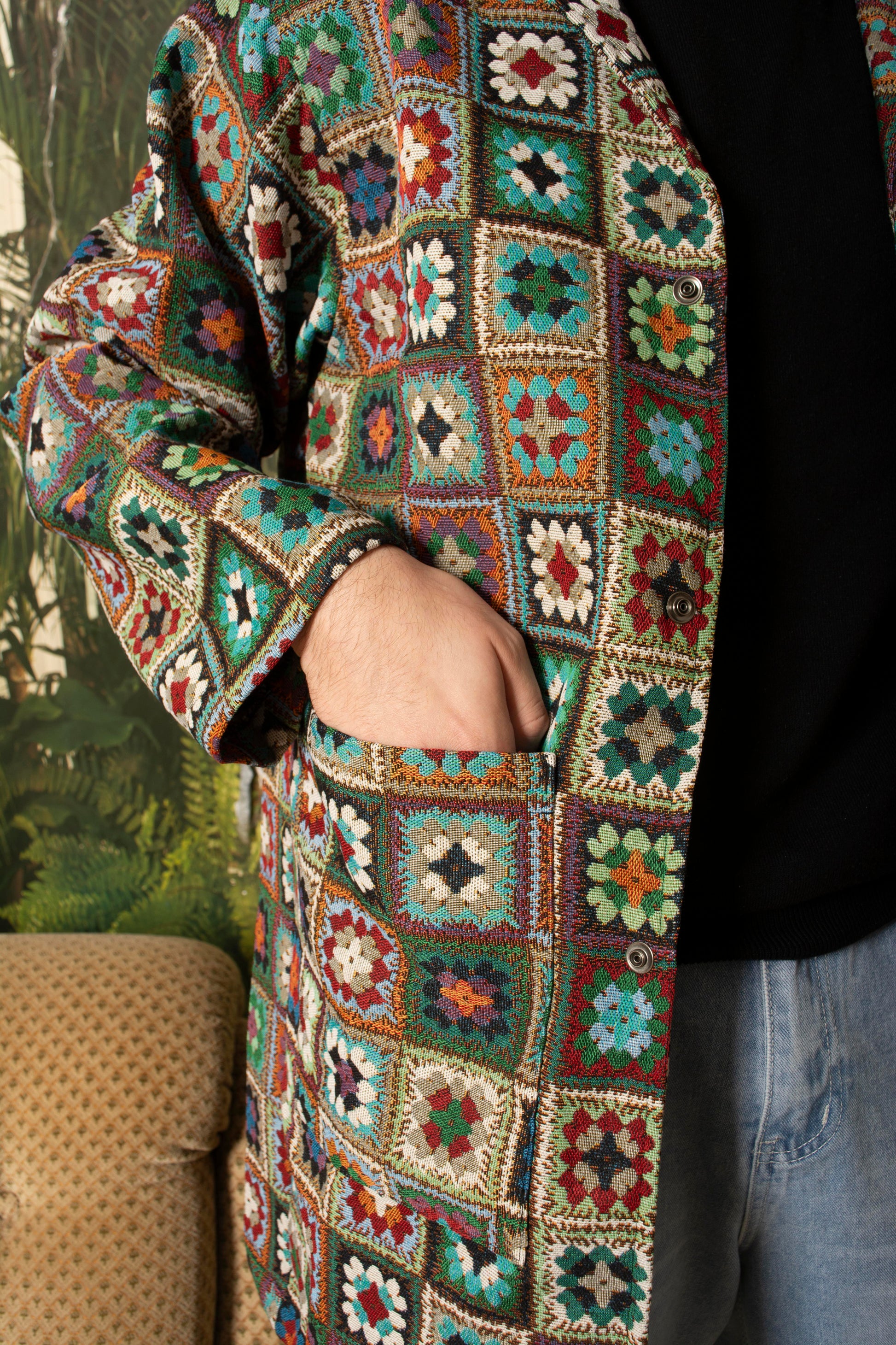 The Huda Coat carries the essence of its name — guidance and calm direction. Its soft, subtle color palette reflects clarity and balance, making it perfect for all occasions. This long, unisex coat buttons up for a polished silhouette and includes two side pockets for practicality. Lightweight yet stylish, the Huda Coat blends modern comfort with a sense of timeless sophistication. Available in all sizes.