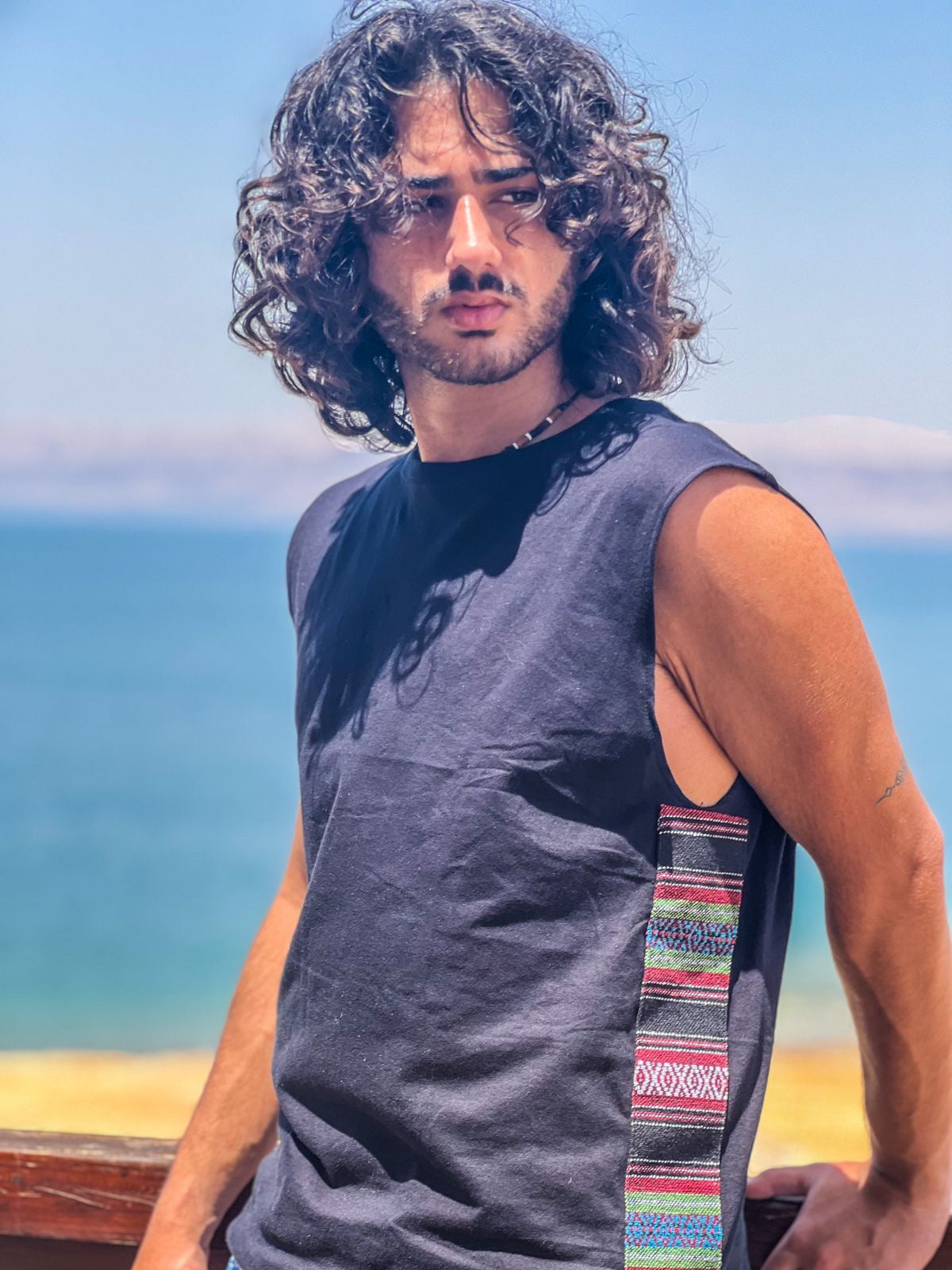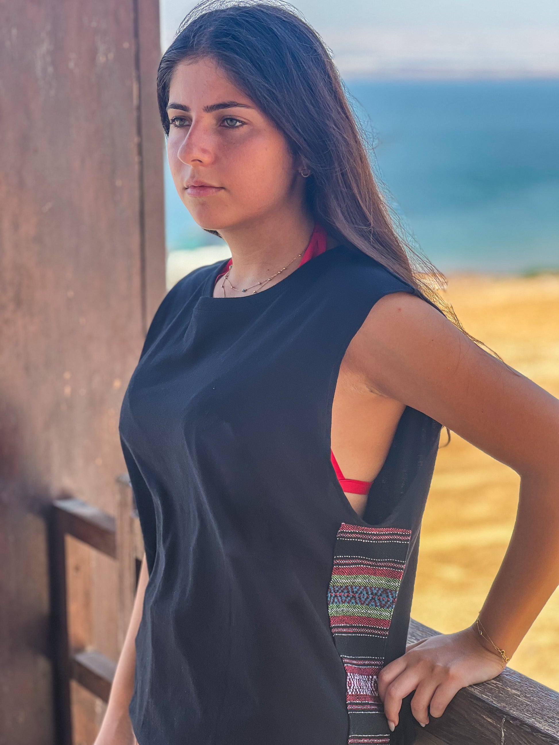Karaz Side-strips on Black sleeveless shirt