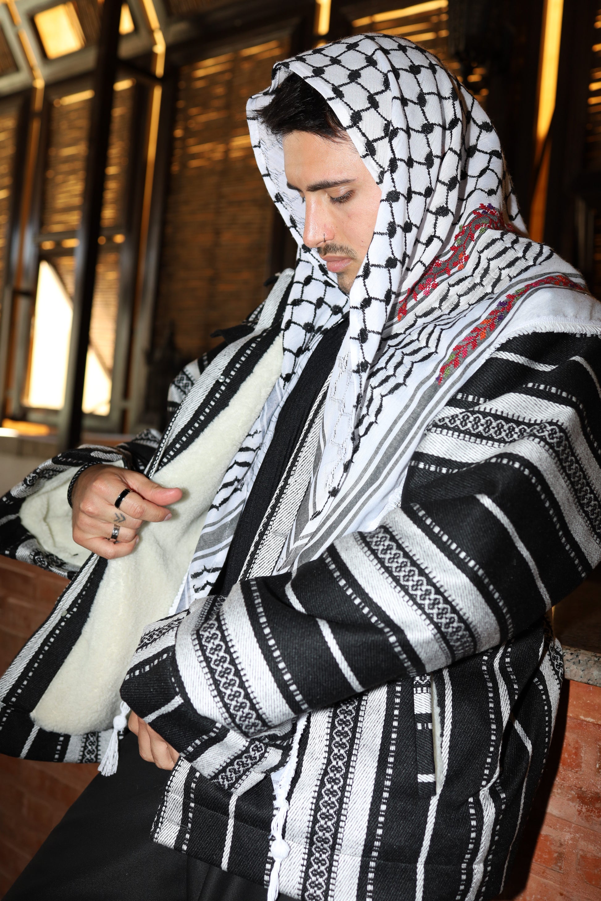 Elevate your wardrobe with the Qashabeyyeh Palestine 48 Fuzzy Lined Jacket. Order yours today and discover the blend of sophistication and comfort that defines our collection. Make a statement with your style and embrace the art of customizable fashion.