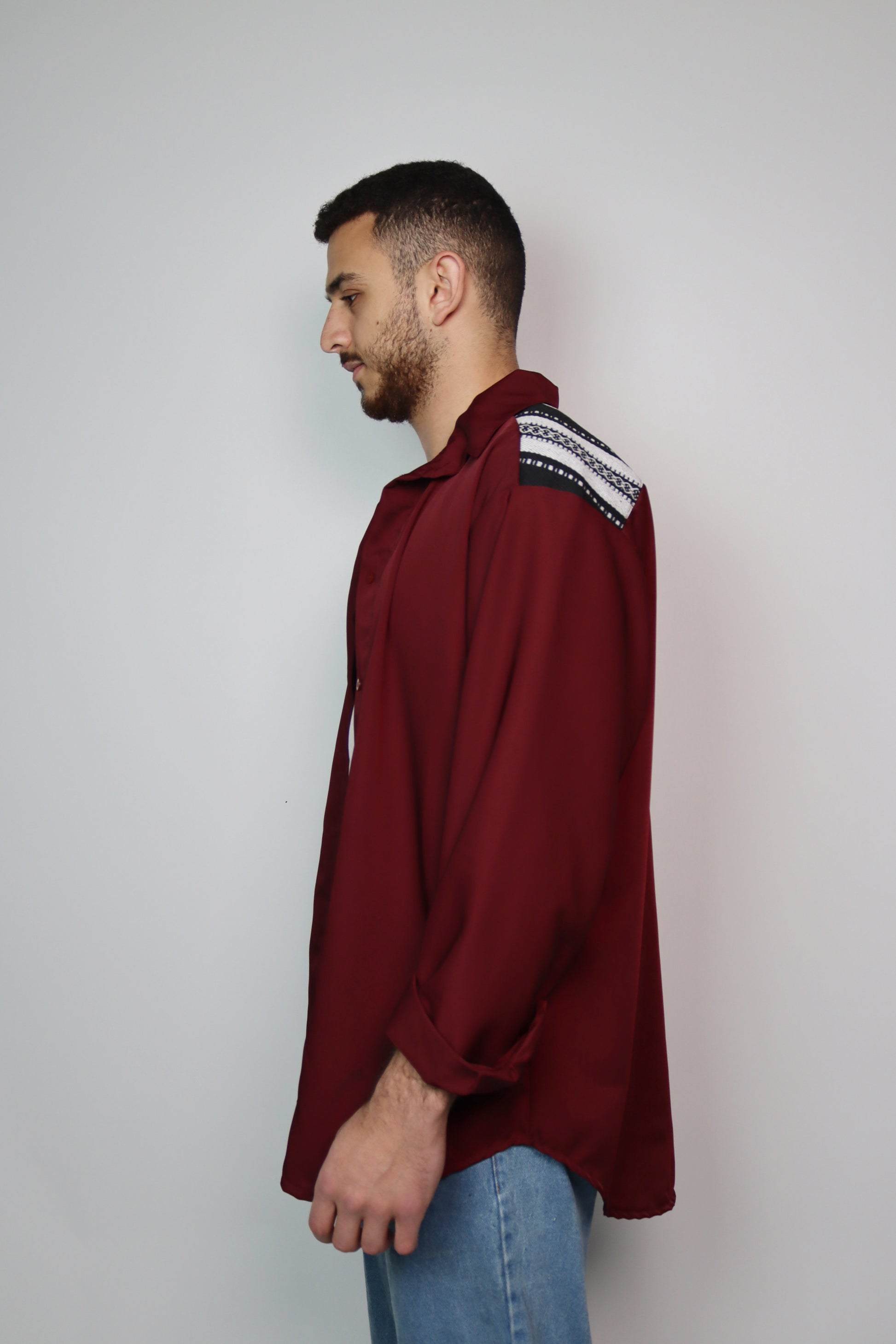 Introducing the Qashabeyyeh Palestine 48 on Maroon Shirt : A Handmade shirt for All Sizes with Worldwide Shipping.