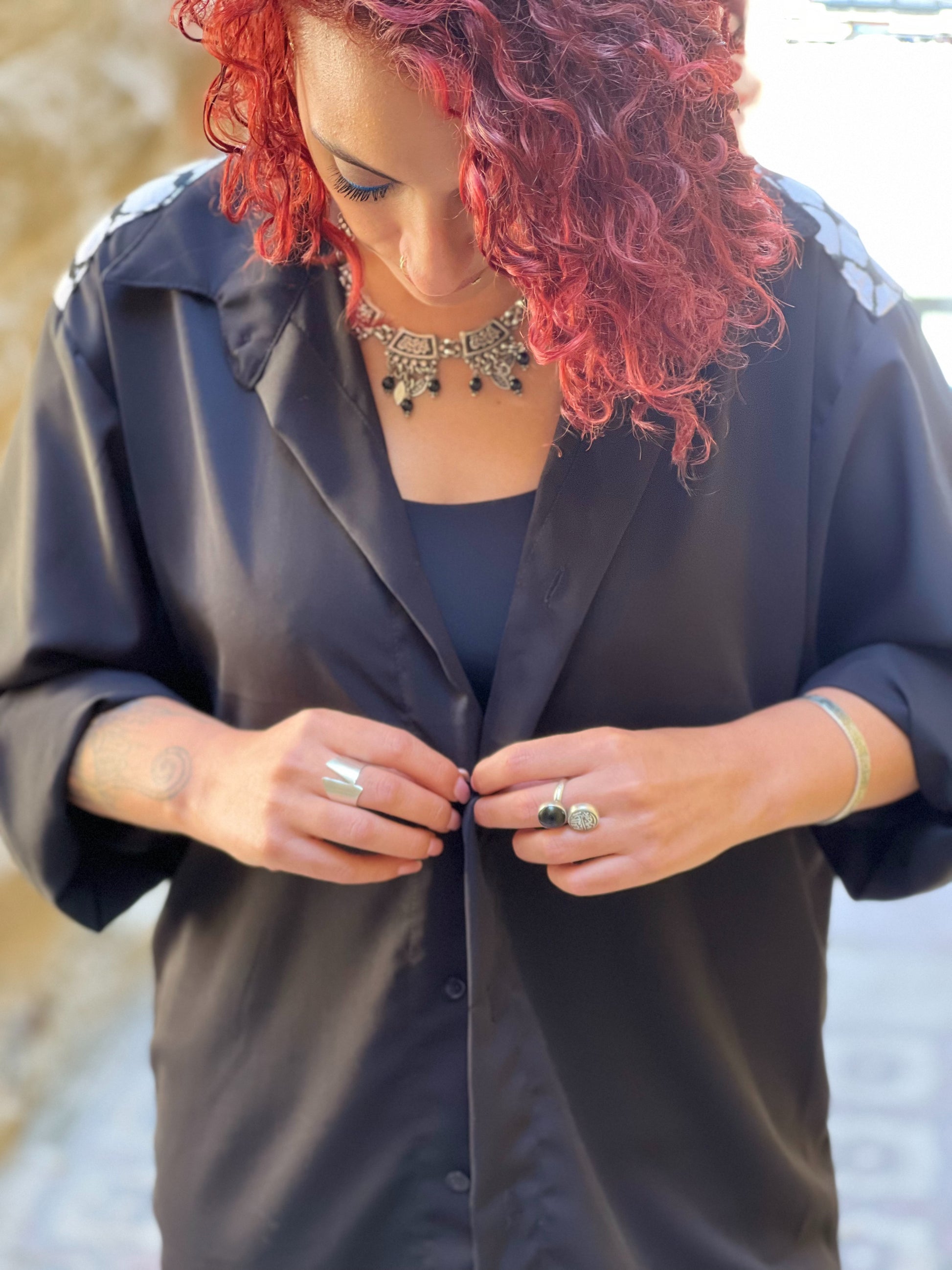 Introducing the Qashabeyyeh Palestine Fishnet on Black Shirt : A Handmade shirt for All Sizes with Worldwide Shipping.
