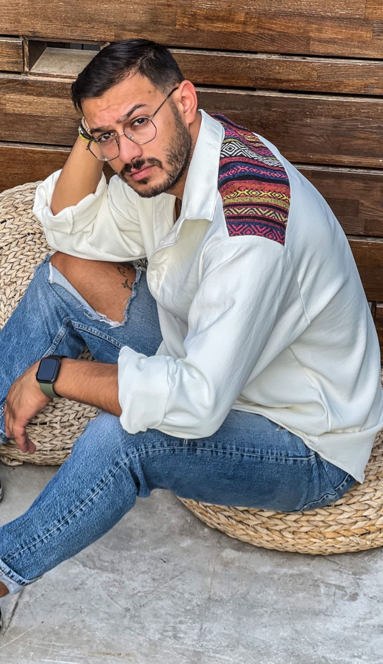 Elevate your style with the Qashabeyyeh Rabe'e on White Shirt. Order this handmade shirt today and experience the perfect blend of comfort, style, and craftsmanship. Embrace the essence of Qashabeyyeh's designs and make a fashion statement that reflects your unique personality.