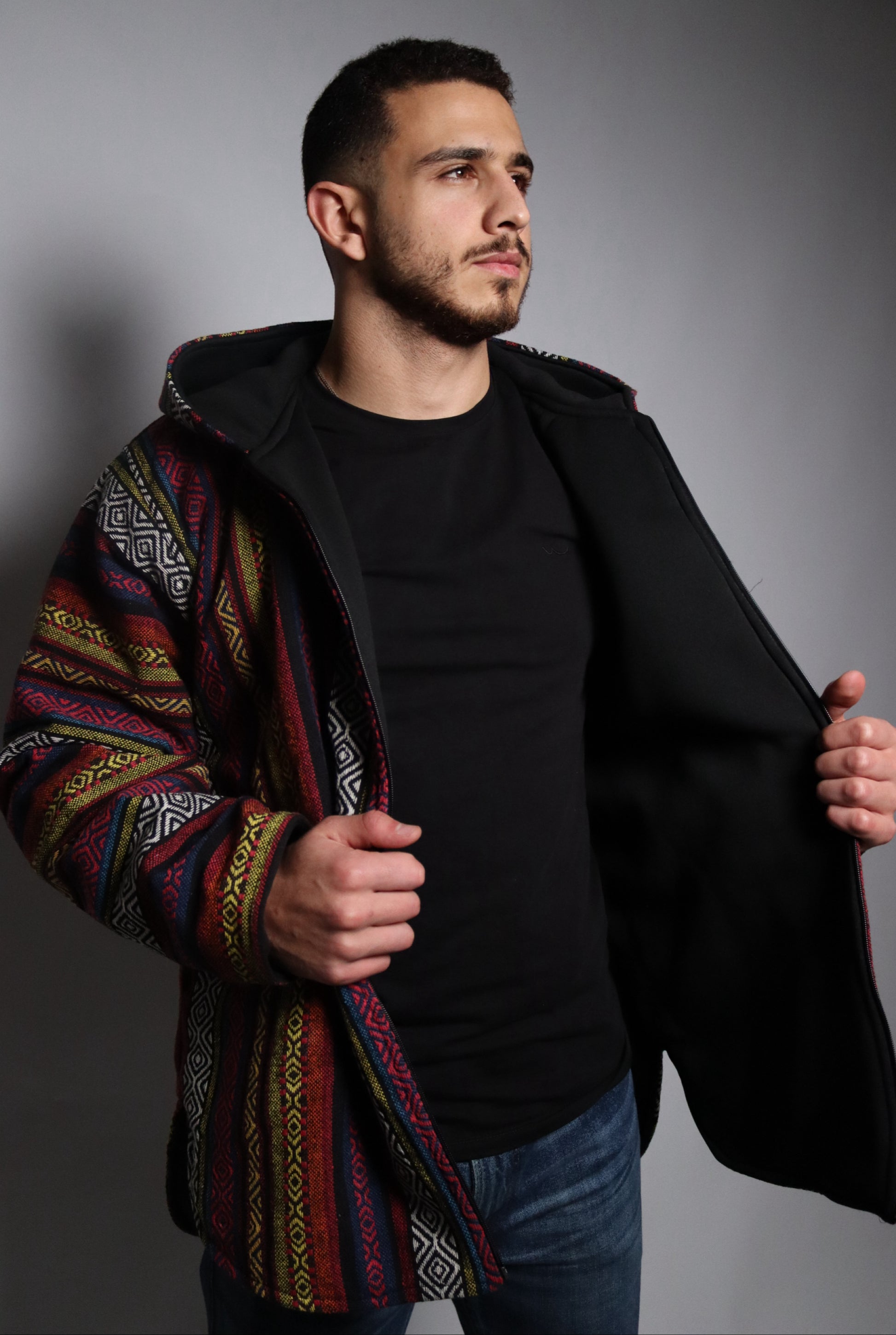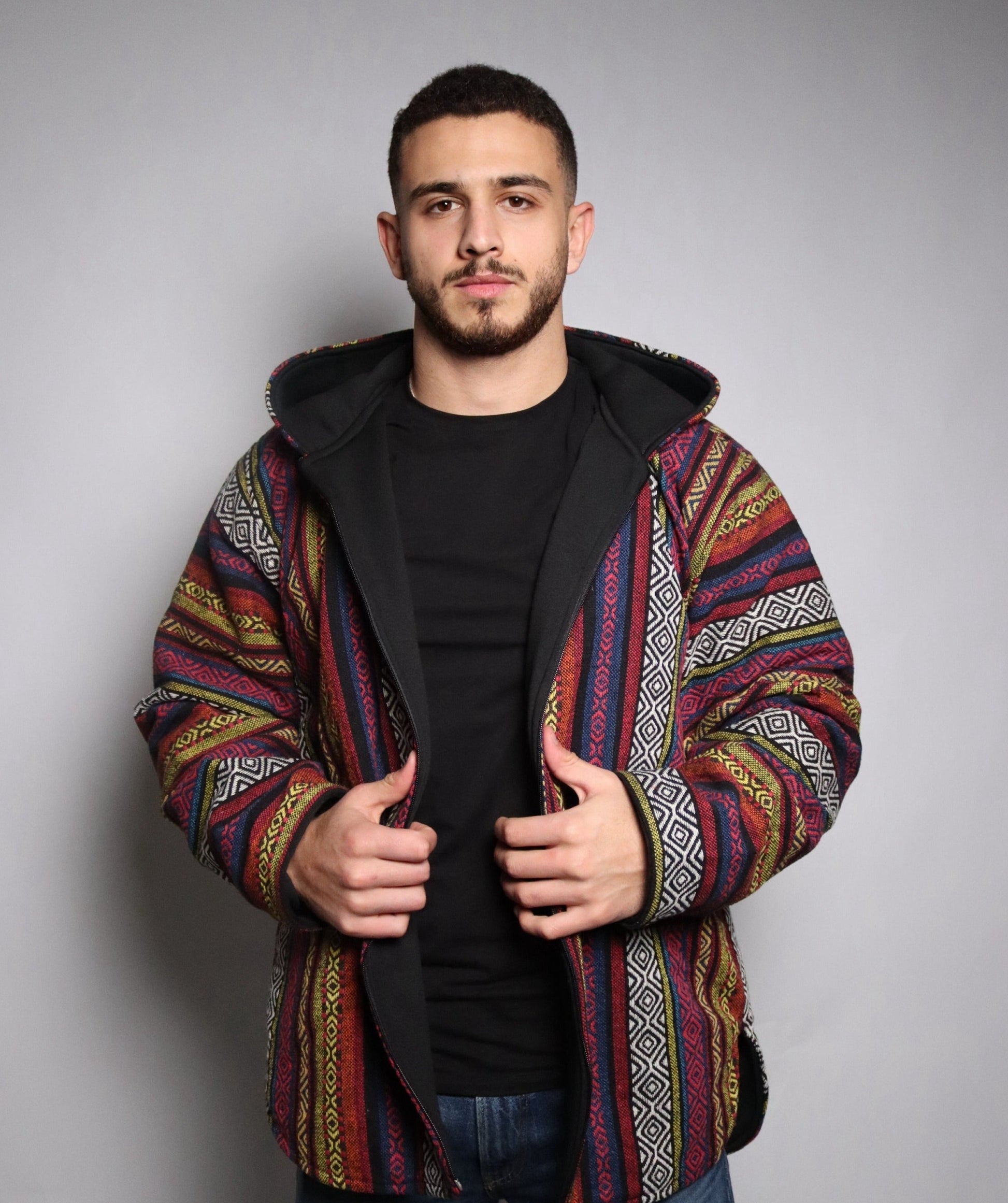 Experience the perfect blend of style and individuality with the Qashabeyyeh Rabe'e Full Zipper Jacket. Handmade with meticulous attention to detail, this unisex hoodie showcases exceptional craftsmanship and a contemporary design that is sure to make a statement.