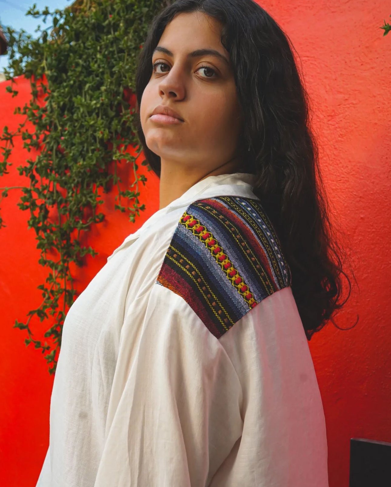 Elevate your style with the Qashabeyyeh Salam on White Shirt. Order this handmade shirt today and experience the perfect blend of comfort, style, and craftsmanship. Embrace the essence of Qashabeyyeh's designs and make a fashion statement that reflects your unique personality.
