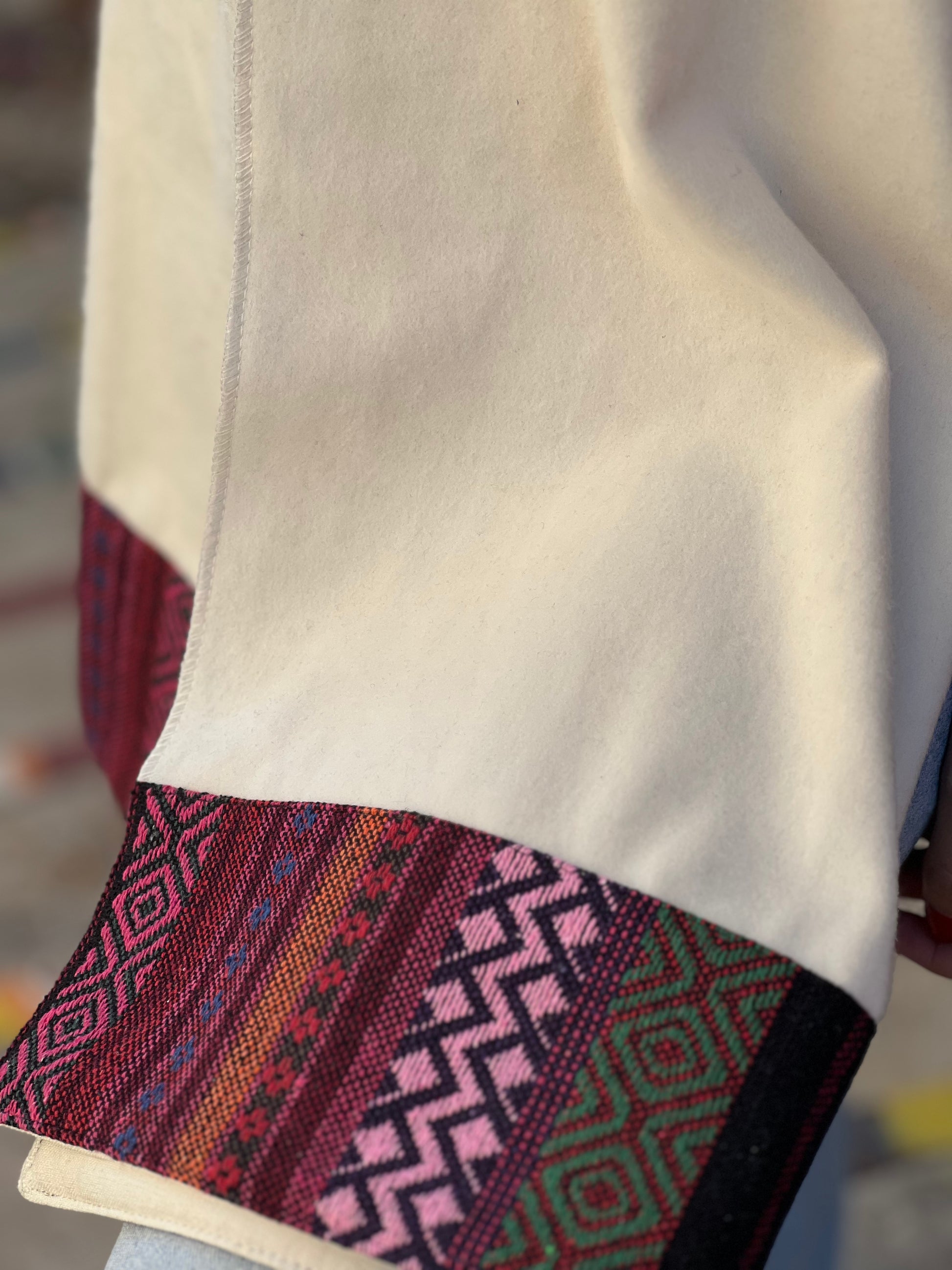 Embrace the fusion of heritage and urban style with the Qashabeyyeh Saru on Off-white Scarf. Elevate your fashion game and make a statement that transcends borders, celebrating the beauty of Arab culture wherever you go.