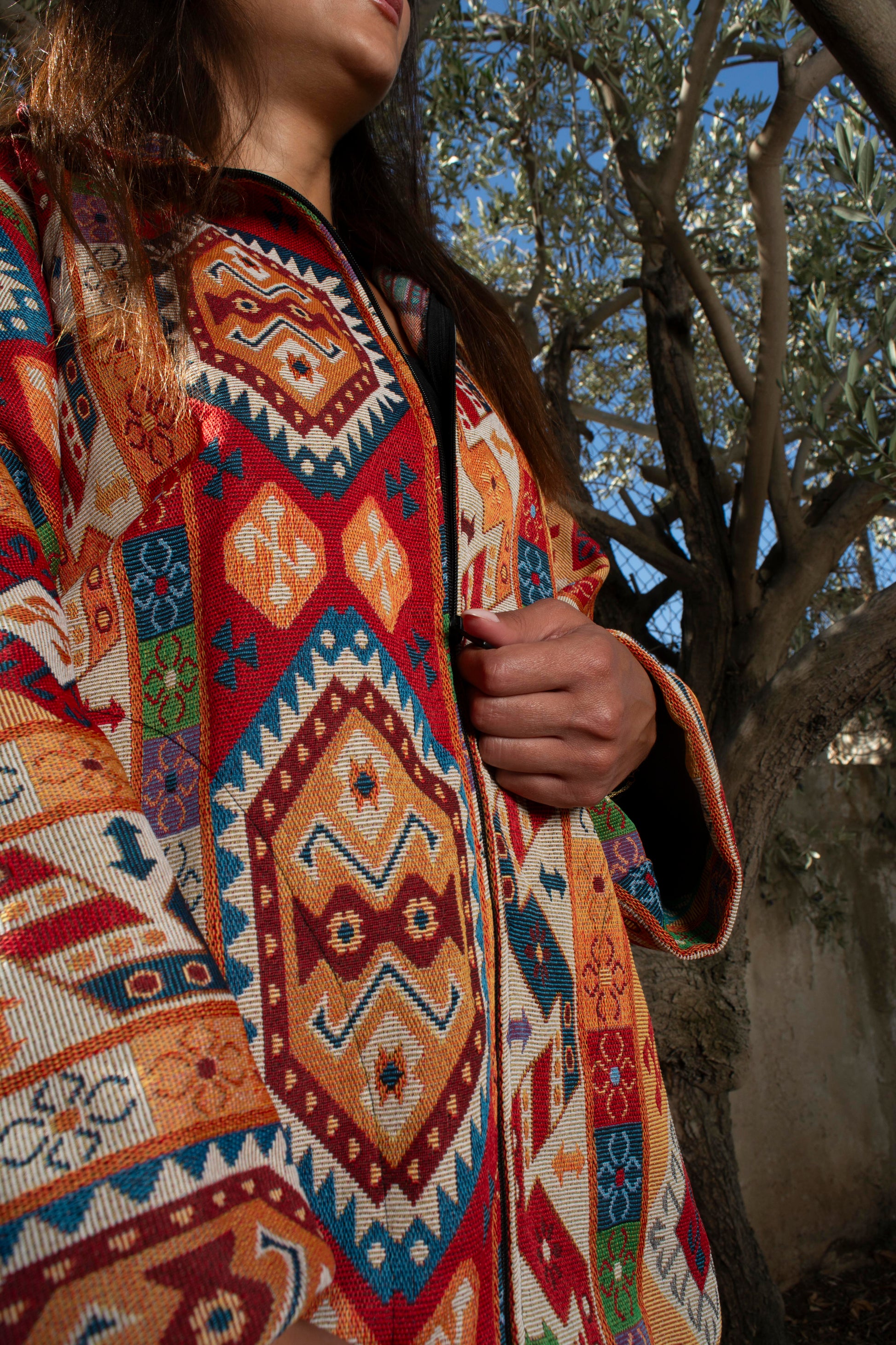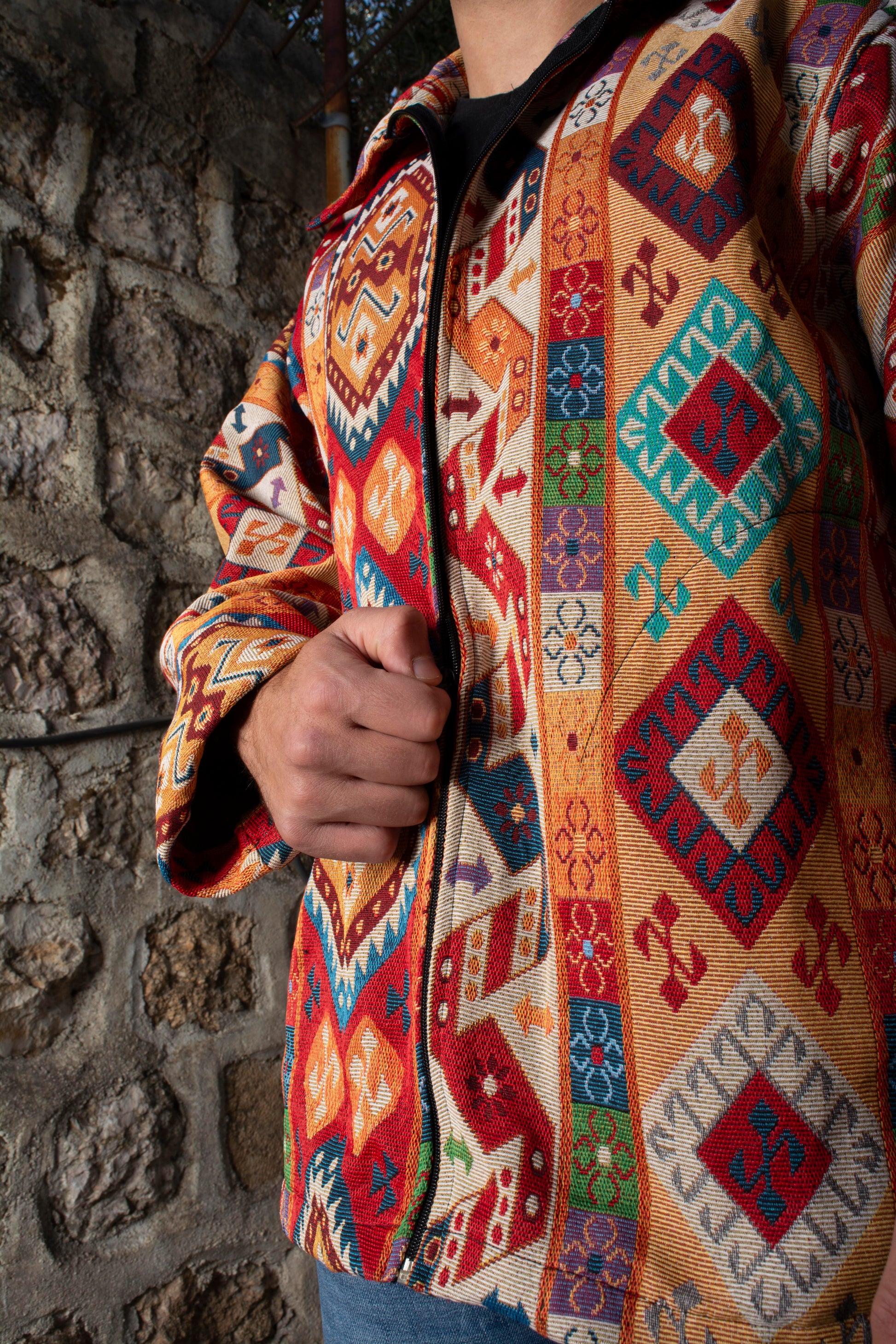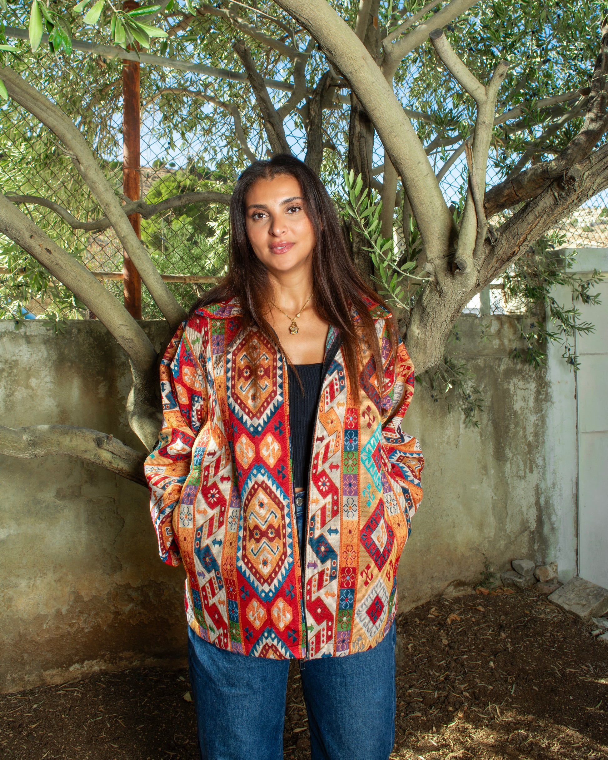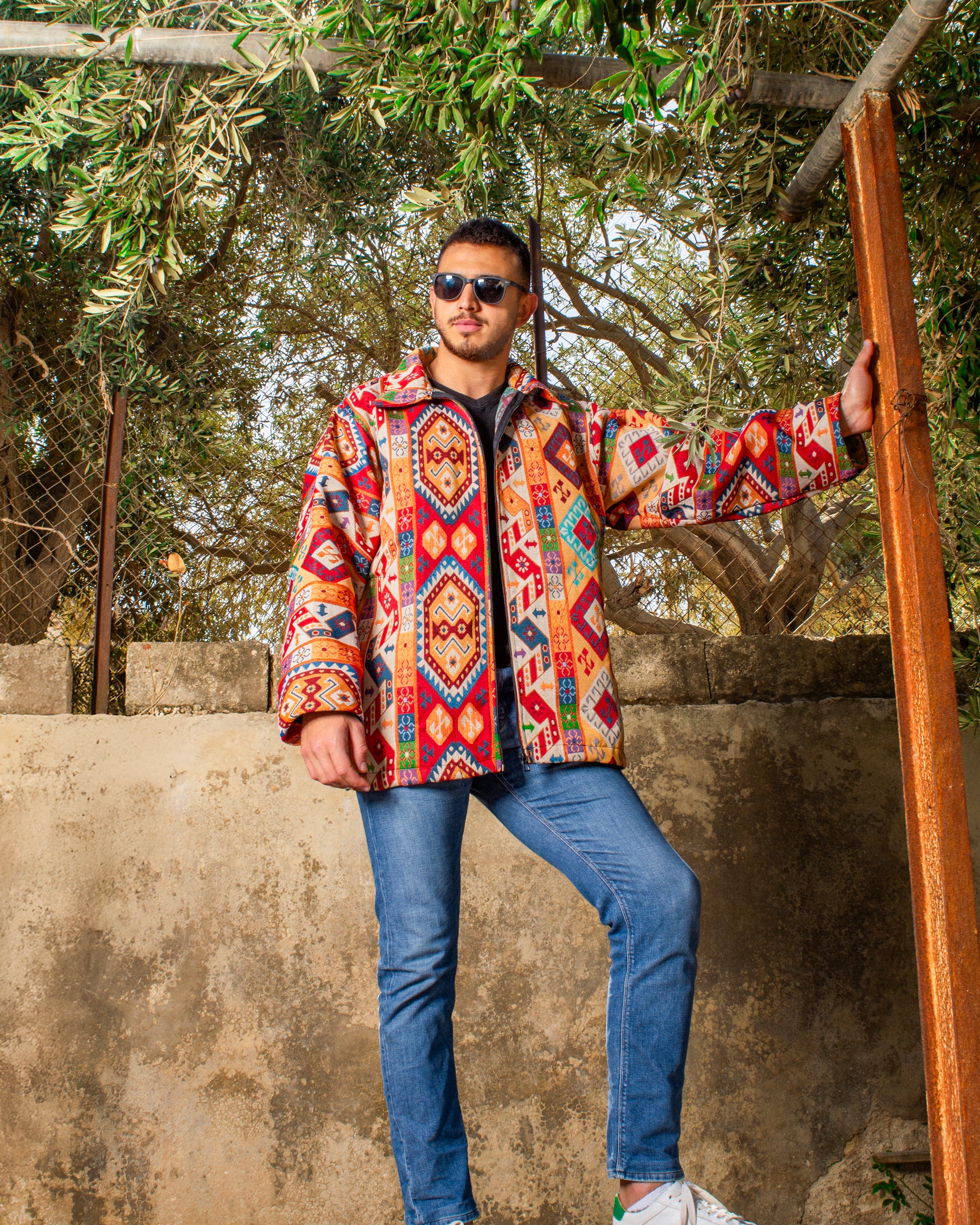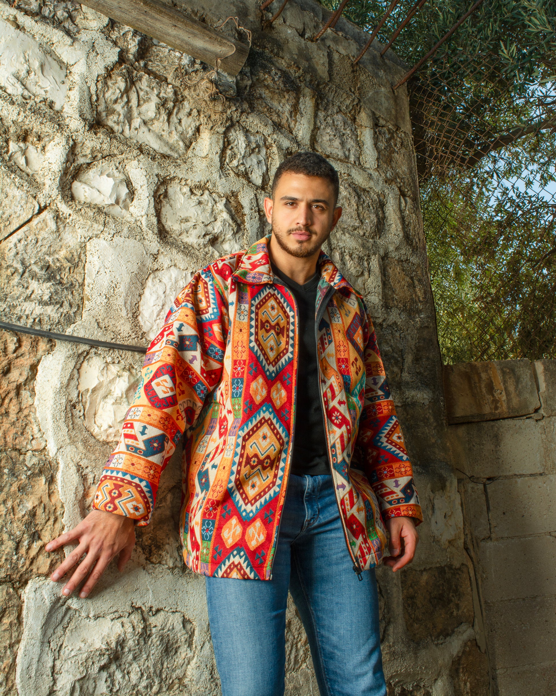 The Shams Jacket is a locally made Egyptian piece that blends bold color with everyday ease. Featuring a vibrant mix of orange, yellow, and white, it brings warmth and energy to your look — perfect for spring and autumn days.