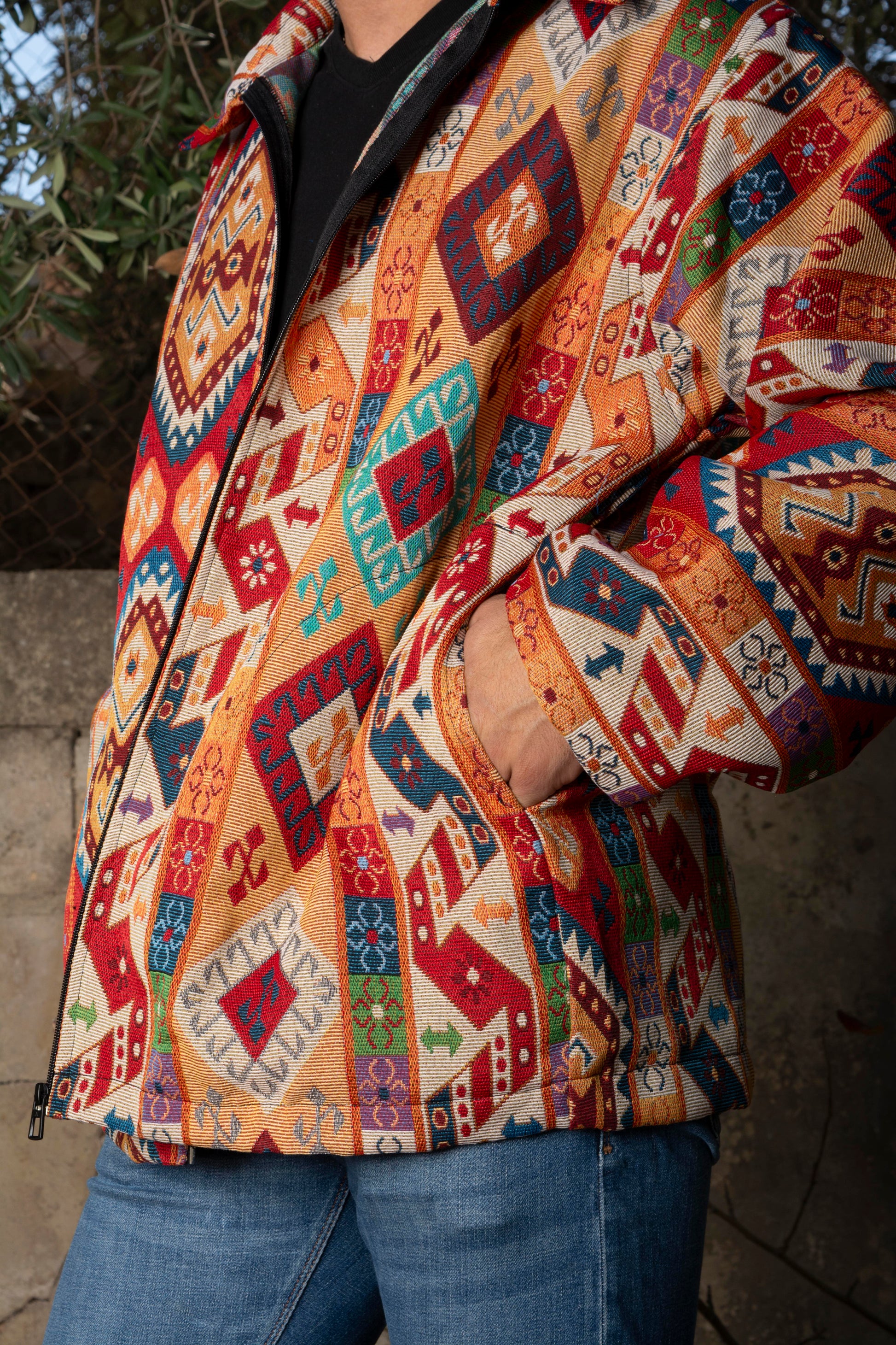 No hood. No fuss. Just bold color and local craftsmanship — the Shams Jacket.