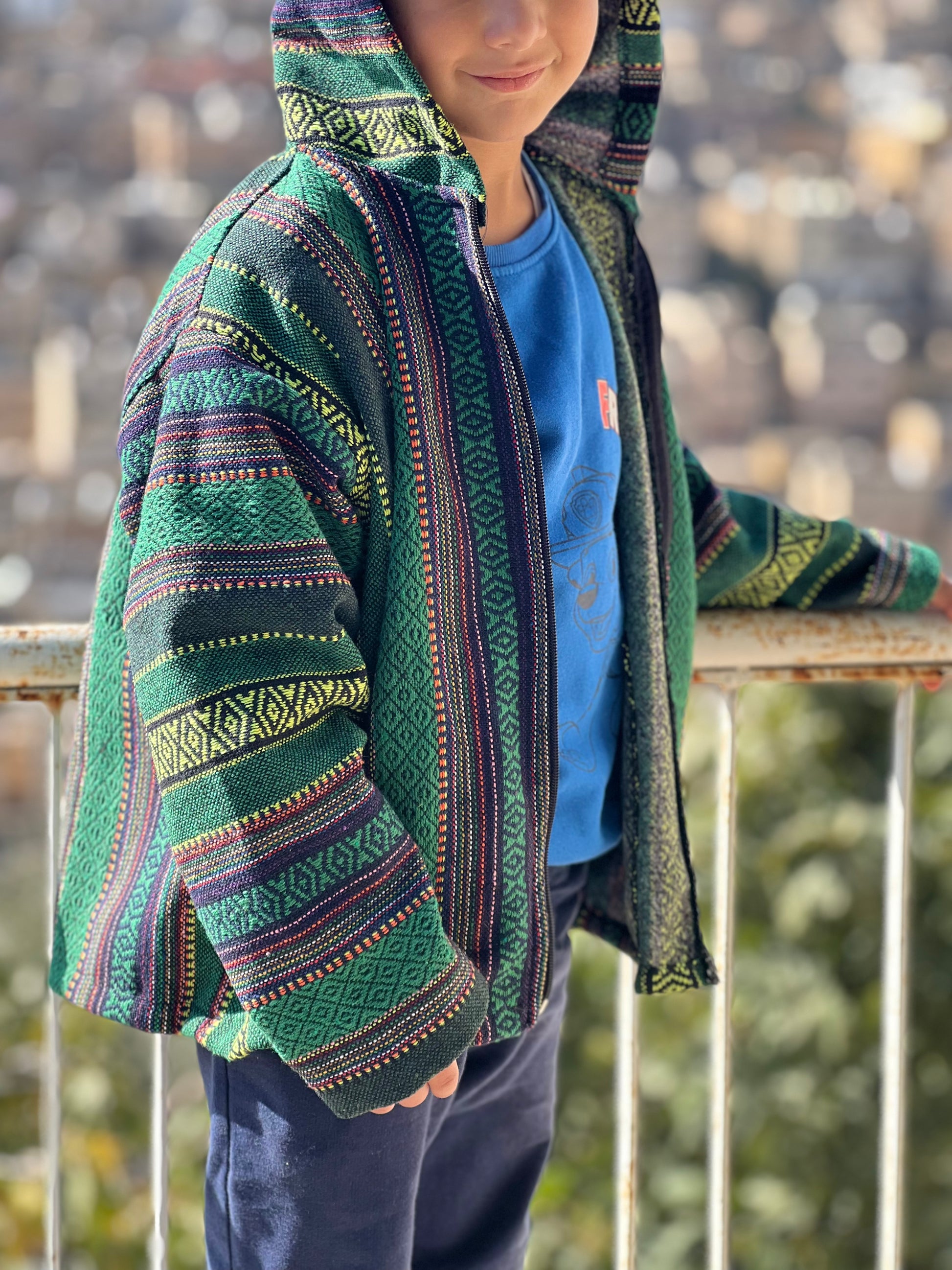 Discover the epitome of style and craftsmanship with the Qashabeyyeh Shuja'a Kids Full Zipper Jacket. Handmade with meticulous attention to detail, this jacket represents the perfect blend of tradition and modernity.
