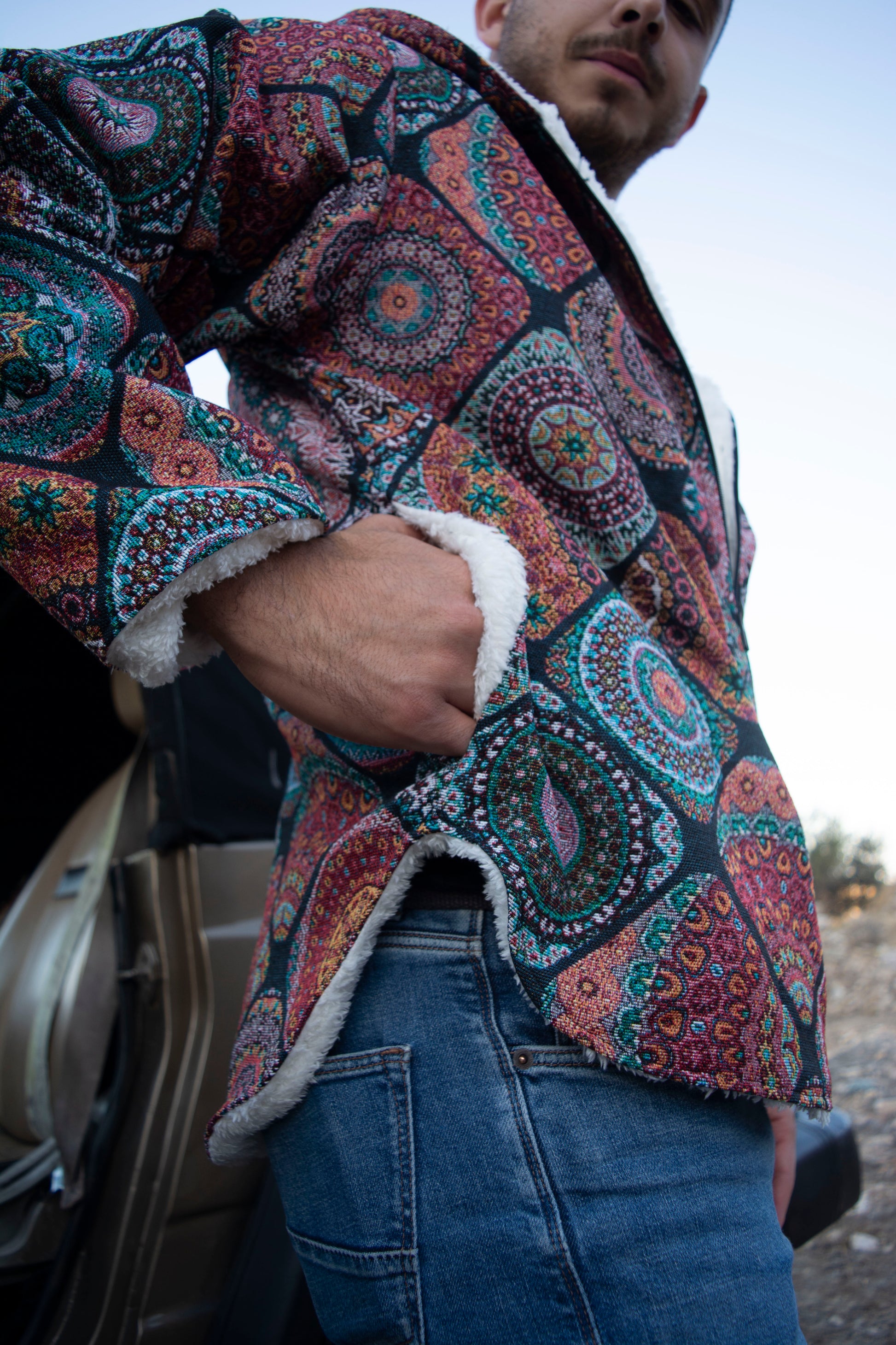 The Taif Fuzzy Lined Jacket mirrors a spectrum of light with its bright, playful colors. Super-soft fur padding, a hood, zipper, and slit cut create a cozy yet stylish silhouette. Unisex and available in all sizes, it’s perfect for adding warmth and color to every day.