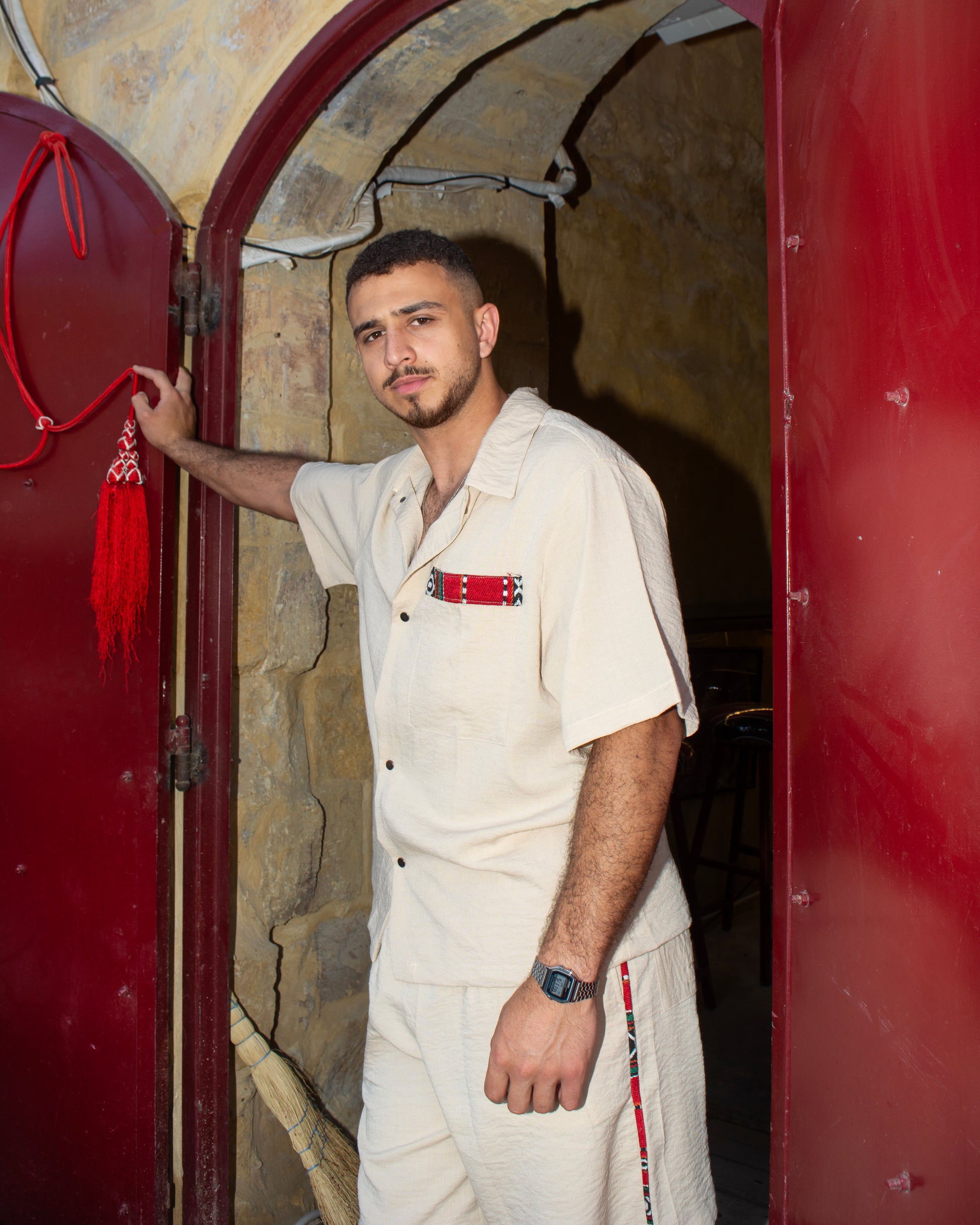 Designed with Qashabeyyeh’s signature patterned accents along the sides, this set brings a subtle cultural touch to a modern, clean look. Whether you’re out exploring or relaxing in the sun, The Sahara Set combines timeless style with unbeatable comfort.