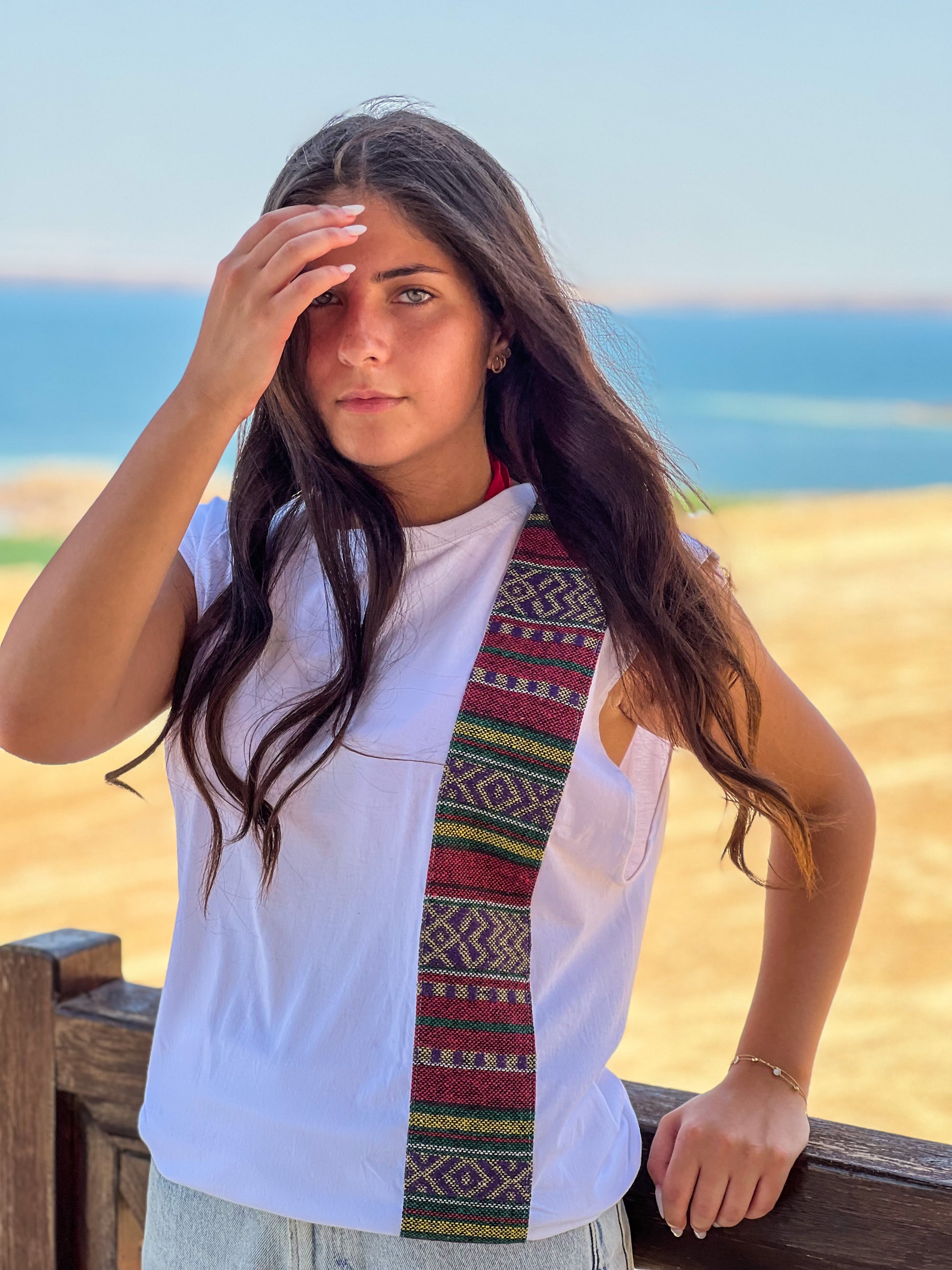 Tout Front strip on White sleeveless shirt